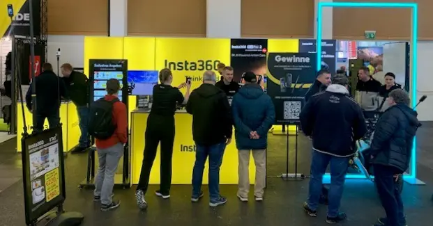 Besonders große Aufmerksamkeit erregte die Insta360 X4, mit der Besucher ihre Motorradfahrten in atemberaubender 360°-Qualität festhalten können.