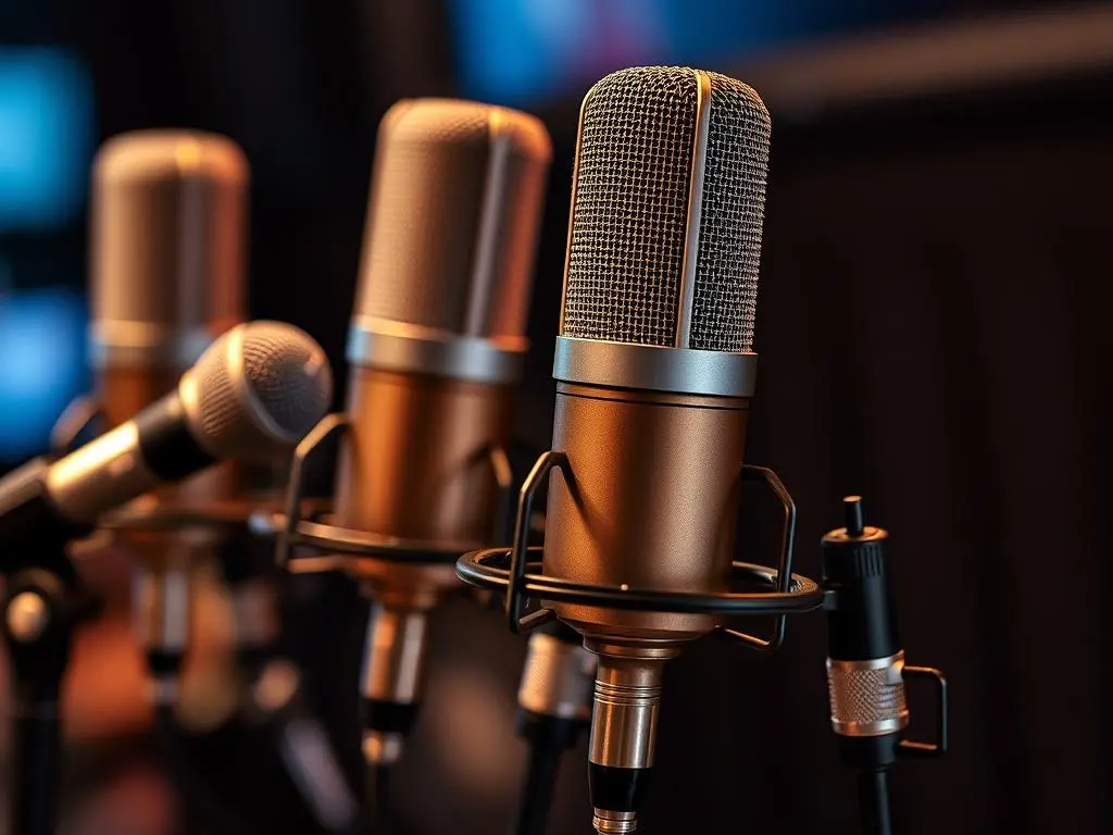 Für Gesang und andere Gesangsspassagen eignen sich Großmembran-Kondensatormikrofone, während dynamische Mikrofone bei lauten Quellen sinnvoll sind und Kleinmembran-Mikrofone sich gut für Percussion oder Overheads eignen. Man sollte Mikrofonzonen klar definieren und auf eine korrekte Platzierung achten, um gleiche Distanz und minimale Raumreflexionen sicherzustellen.